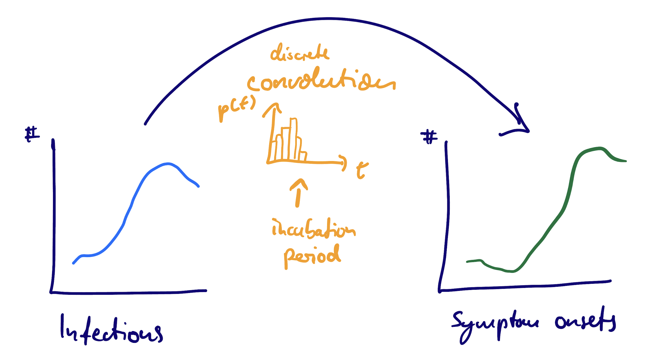 We can use convolutions with the delay distribution that applies at the individual level to determine population-level counts.