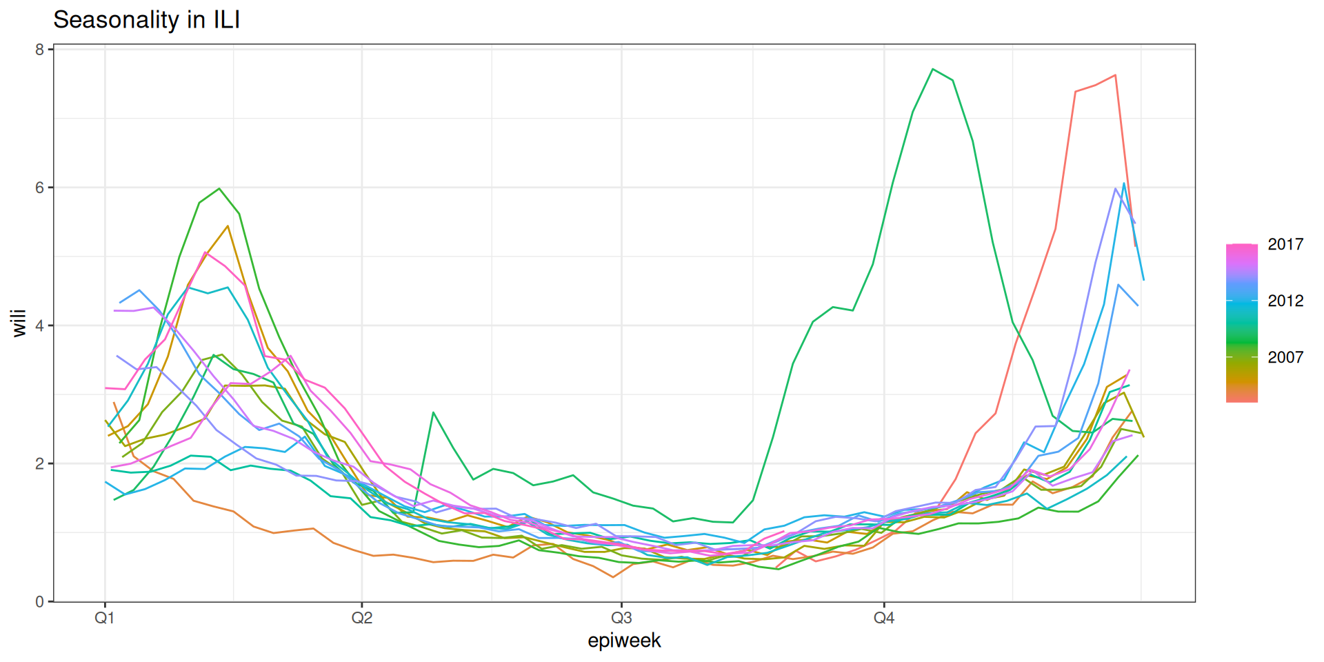 Seasonal patterns are common with many (but not all) endemic diseases. Seasonality can make a disease more predictable, but also means it’s not stationary.